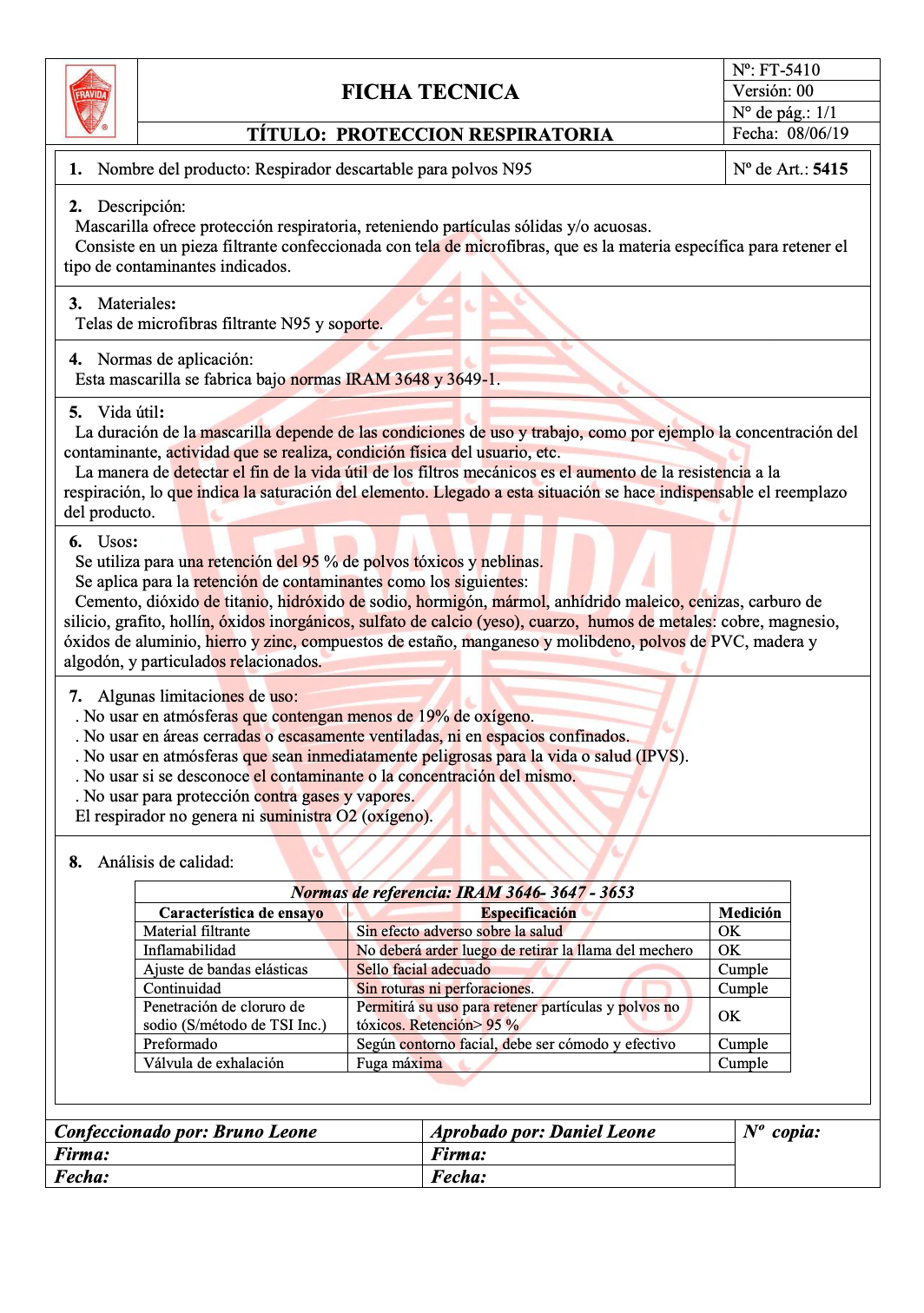 Permitirá su uso para retener partículas y polvos no tóxicos. Retención> 95 %